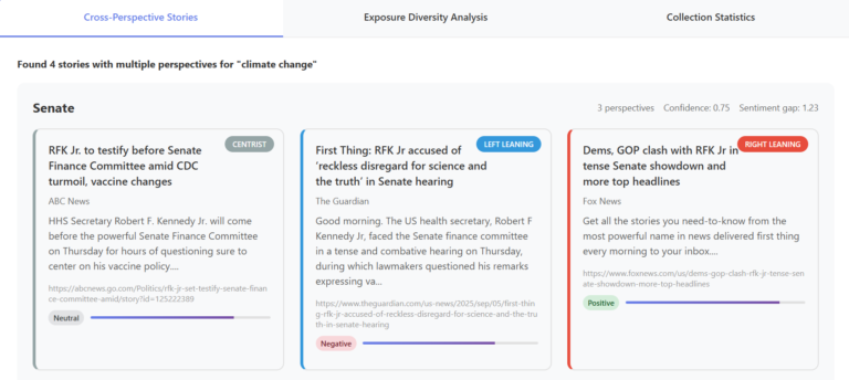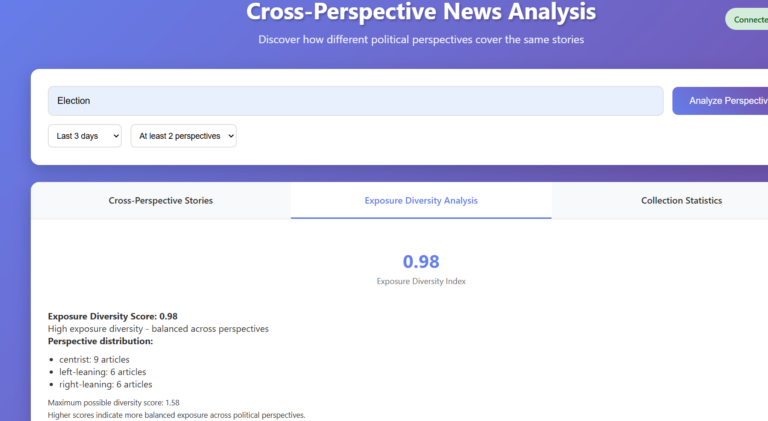 An automated computational framework developed to detect political bias and measure information diversity across international news sources. The system combines machine learning classification with information-theoretic metrics to analyse how news perspectives differ across countries and media ecosystems.